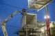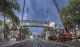 Bereits am Montagmorgen hatten Arbeiter mit Kränen und schweren Geräten das vorletzte Brückenelement auf dem Gelände der Helios Klinik eingehoben. Am frühen Mittwochmorgen folgte nun das letzte Verbindungselement, das direkt über die Franz-Lust-Straße führt.