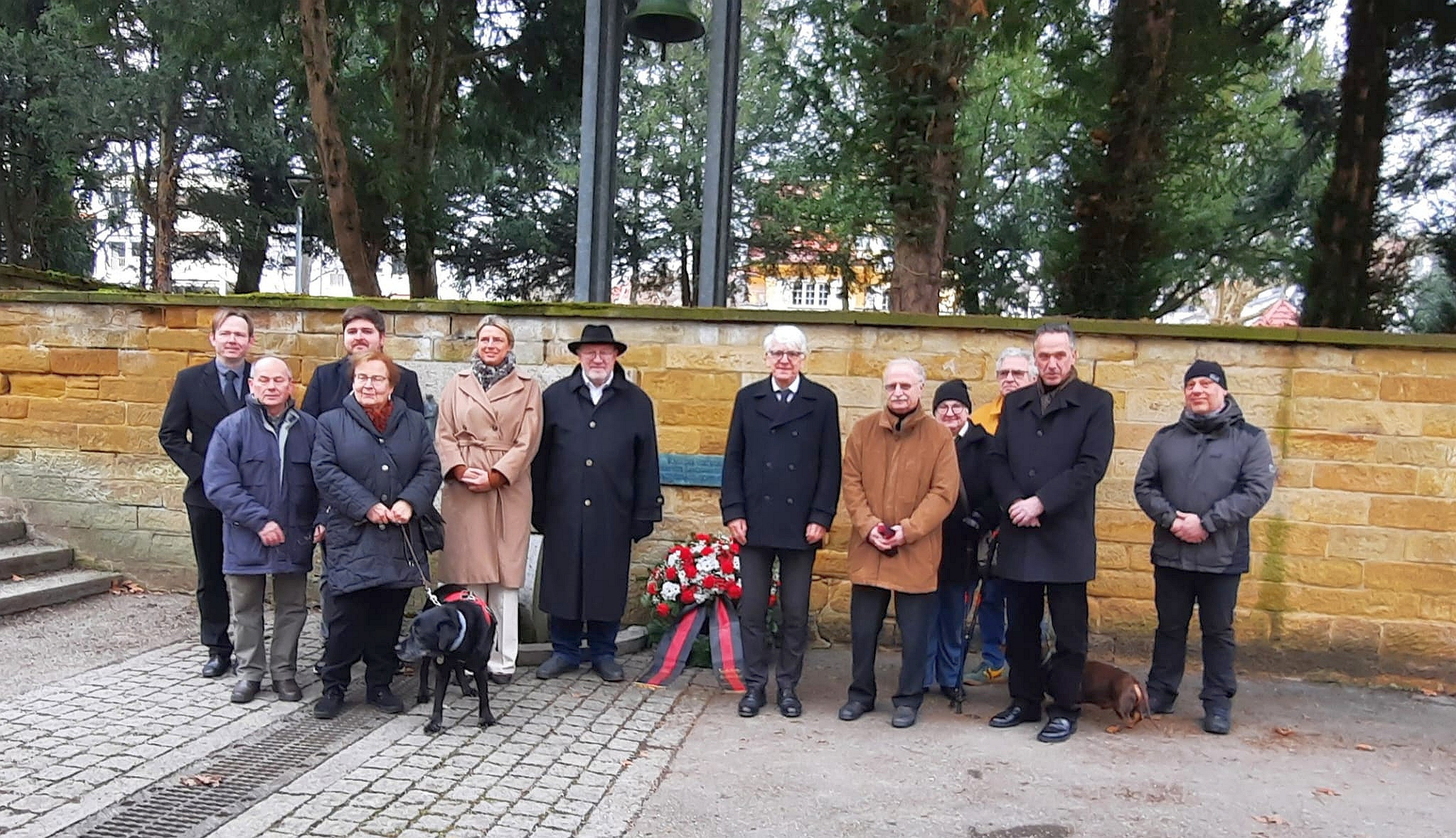 v. l. n. r: Franz Longin, Dr. Christiane Meis, Stadträtin Iris Ripsam, Konrad Epple MdL, Waltraud Illner, Albert Reich, Gedenkredner Reinfried Vogler, SL-Landesobmann Klaus Hoffmann, Bezirksvorsteherin von Stuttgart-Nord, Sabine Mezger, Reinhold Frank und Oberbürgermeister Dr. Frank Nopper (Foto: Helmut Heisig)
