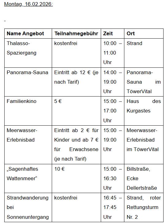 Programm Zeugnisferien auf Juist 2026 - Montag, 02.02.2026