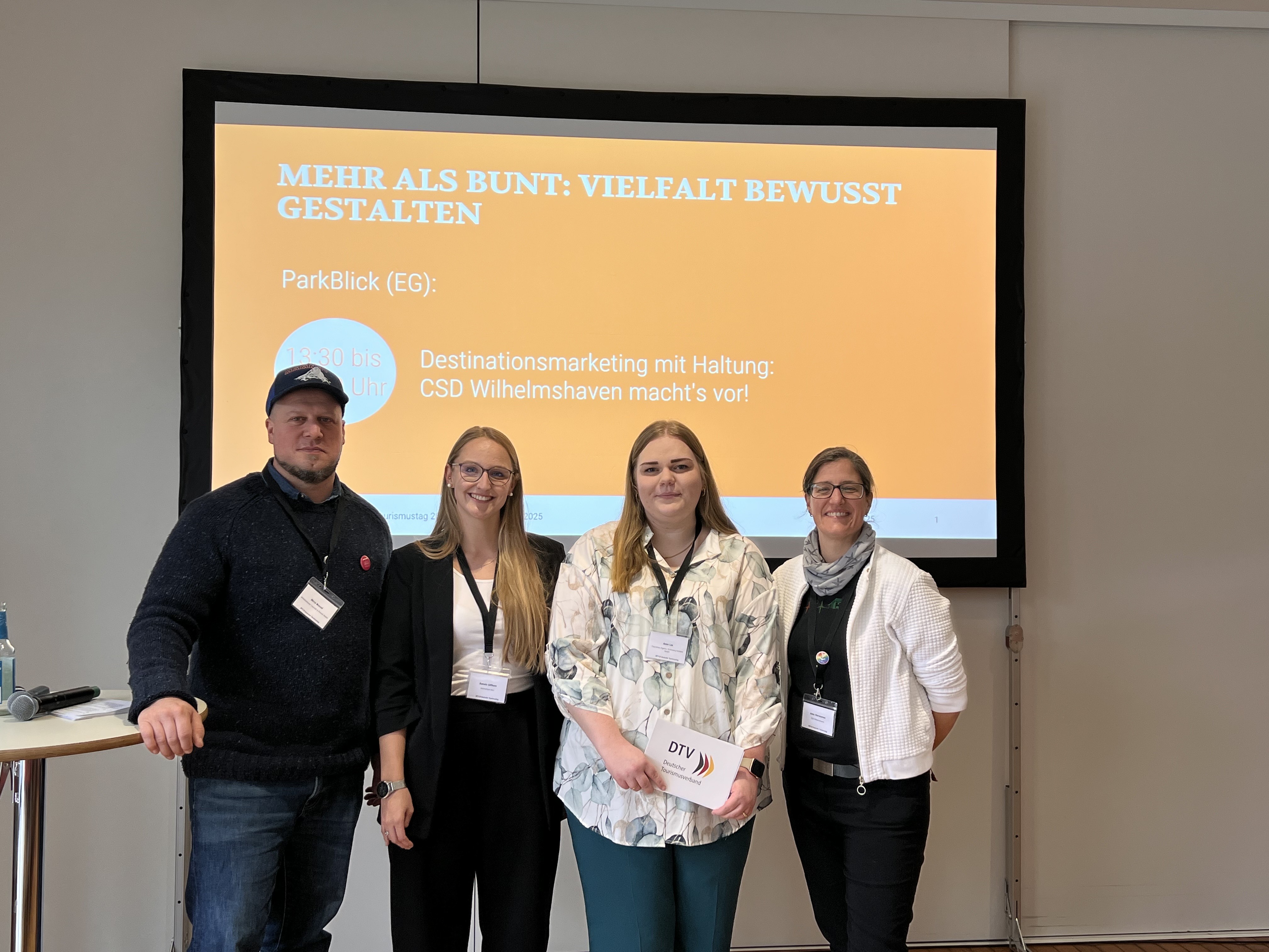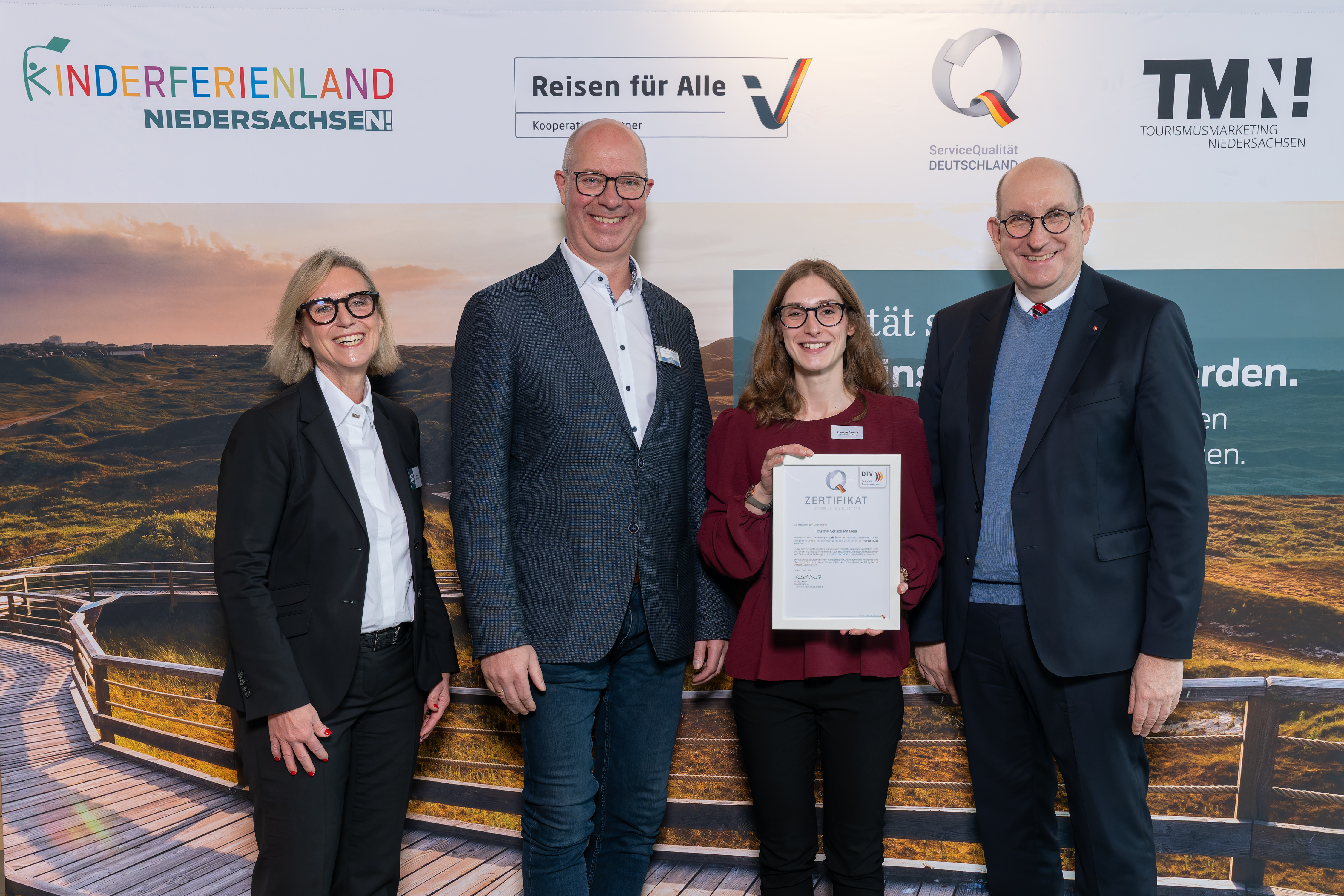 Freuten sich sehr über die Auszeichnung „ServiceQualität Deutschland Stufe II“. v.l. Meike Zumbrock (Geschäftsführerin TourismusMarketing Niedersachsen), Christian Wandscher (Geschäftsführer Bad Zwischenahner Touristik GmbH), Theresa Stumm (Marketing Bad Zwischenahner Touristik GmbH) und Matthias Wunderling-Weilbier (Staatssekretär Ministerium für Wirtschaft, Verkehr und Bauen). / Foto: www.scheffen.de