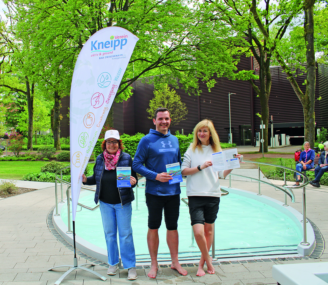 v.l. Kurdirektor Dr. Norbert Hemken, 1. Vorsitzende Kneipp-Verein Christa Nofal sowie Beirat Wolfgang Leffers ließen es sich nicht nehmen direkt ins Wasser zu gehen.