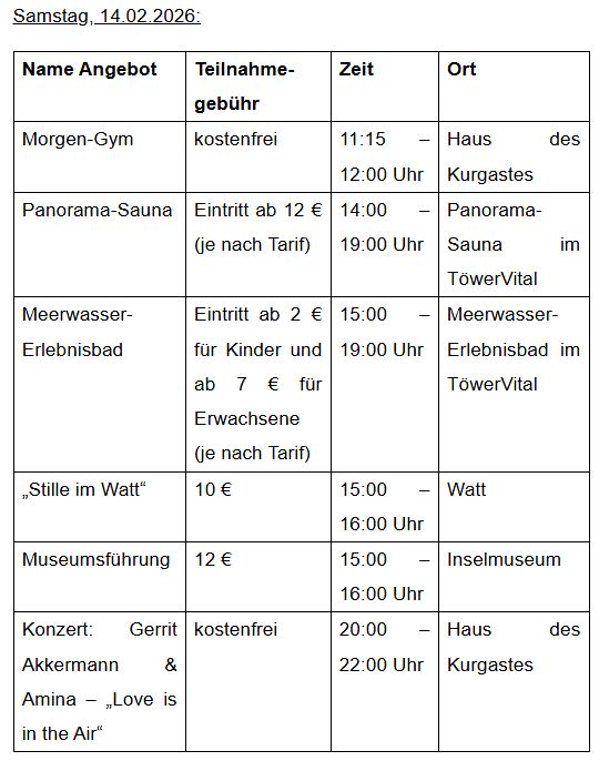 Programm Zeugnisferien auf Juist 2026 - Samstag, 31.01.2026