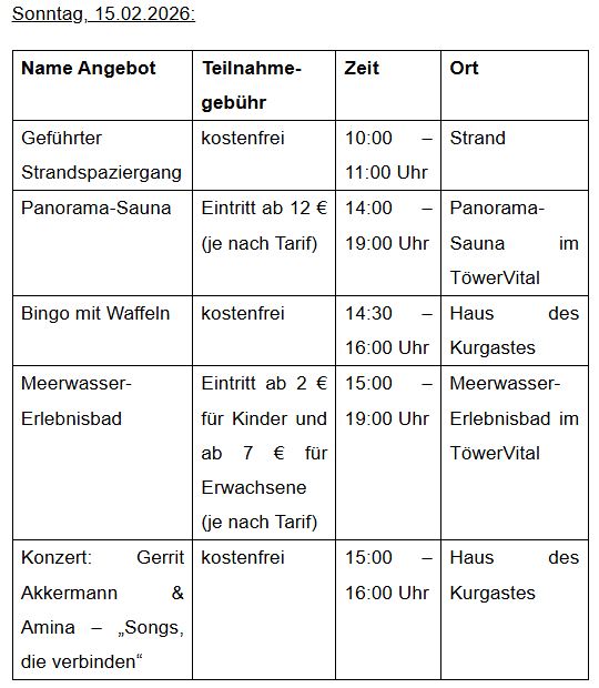 Programm Zeugnisferien auf Juist 2026 - Sonntag, 01.02.2026