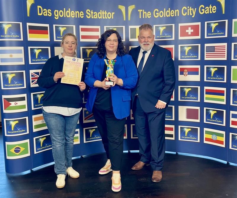 Michaela Rademacher, Marianne Hanke und Olaf Raffel (alle NHC) bei der Übergabe des silbernen Bären auf der ITB Berlin