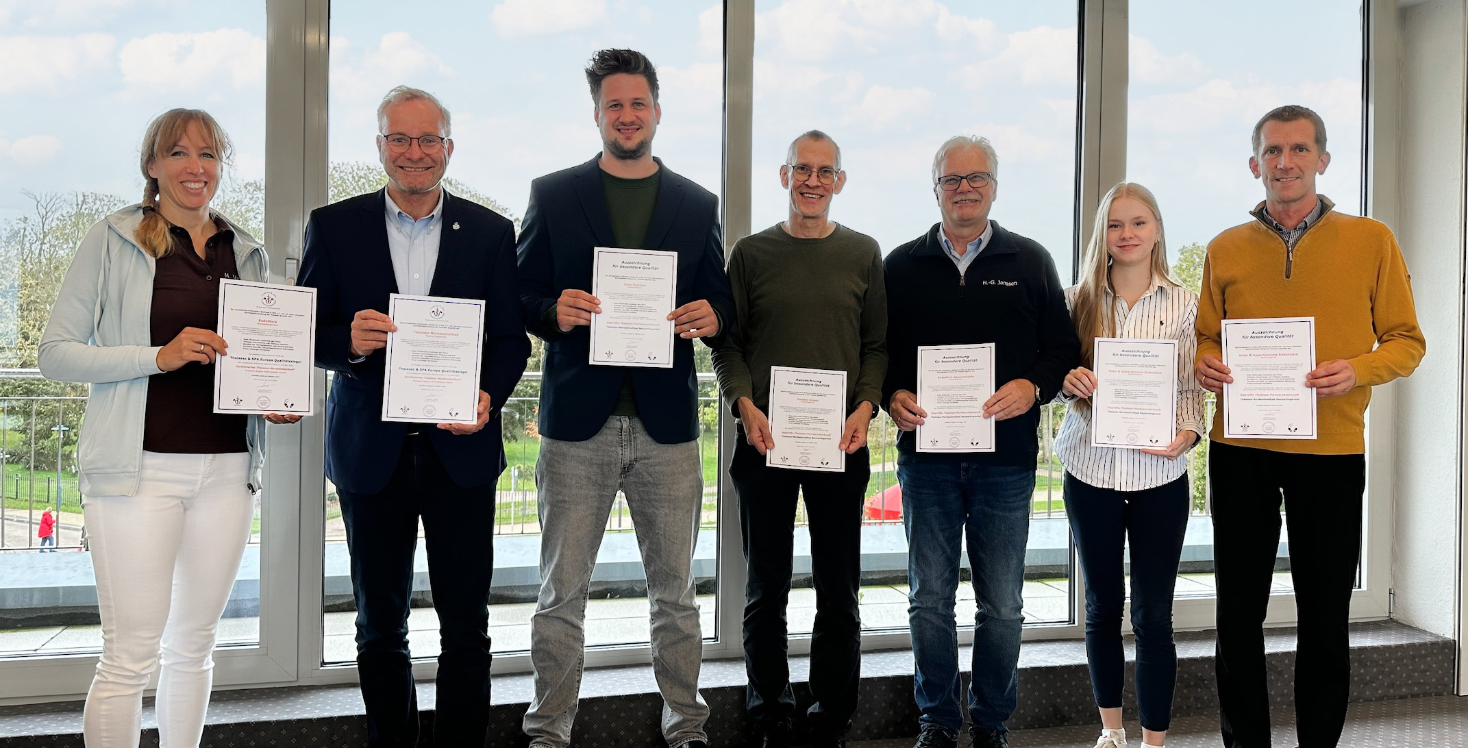 (lifepr) (Wilhelmshaven, 11.10.2024) Am Donnerstag verkündete Christoph Sander, Prüfer des Europäischen Prüfinstituts Wellness & Spa e.V. (EPWS), im Rahmen einer feierlichen Urkundenübergabe die frohe Kunde: Das Thalasso-Nordseeheilbad Neuharlingersiel ist derzeit weiterhin einziger zertifizierter Thalasso-Ort an der deutschen Nordseeküste. Ein unabhängiges Komitee hat die Prüfung vorgenommen. Im Fokus standen dabei die vielfältigen Thalasso-Angebote im Thalasso-Zentrum BadeWerk, die Thalasso-Kompetenz der Tourist-Information sowie der teilnehmenden Unterkunftsbetriebe. Sie alle entsprechenden den strengen Kriterien des Instituts mit Sitz in Bremerhaven. Neben der umfangreichen Prüfung vor Ort wurden auch Mystery-Checks bei allen Betrieben vorgenommen.