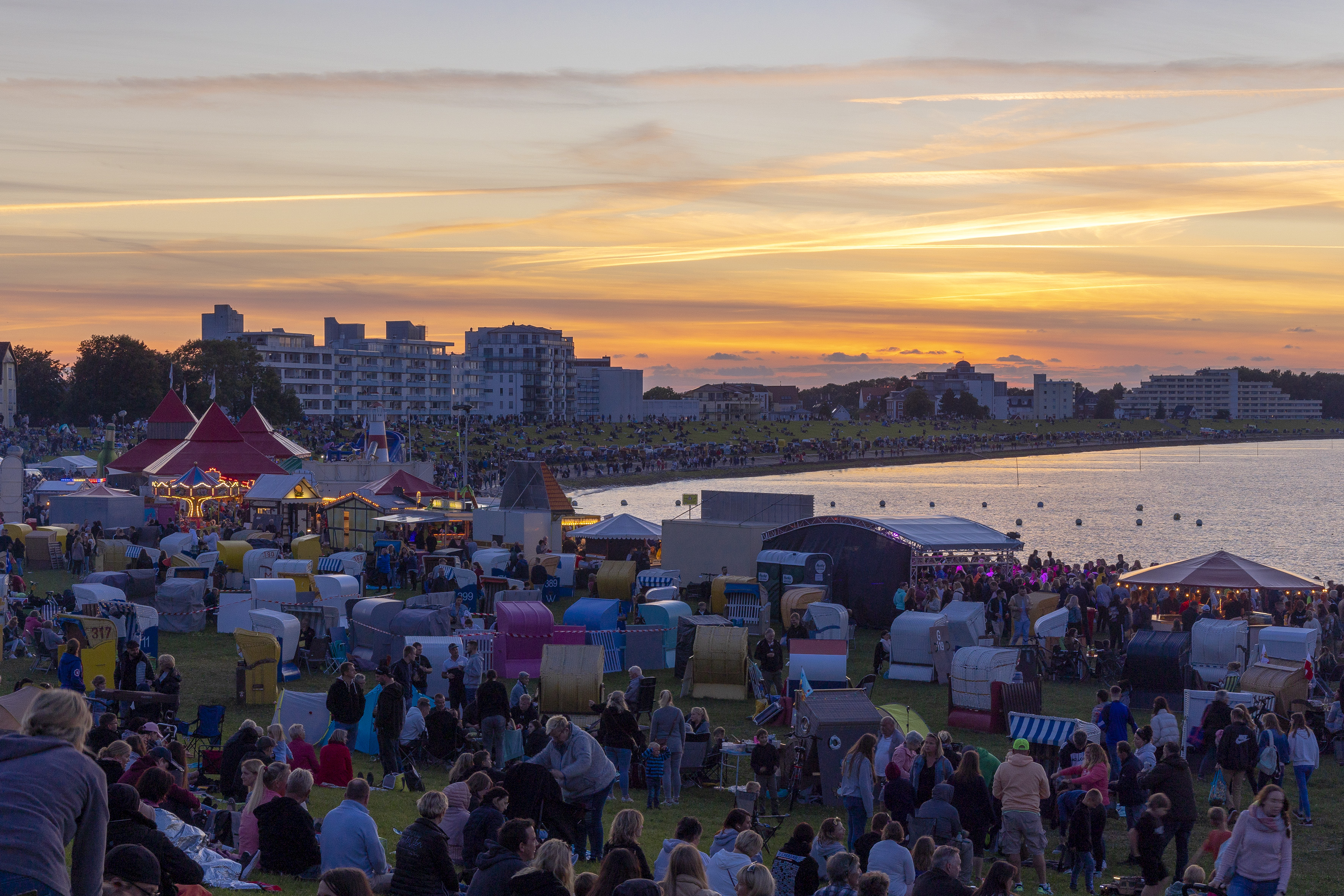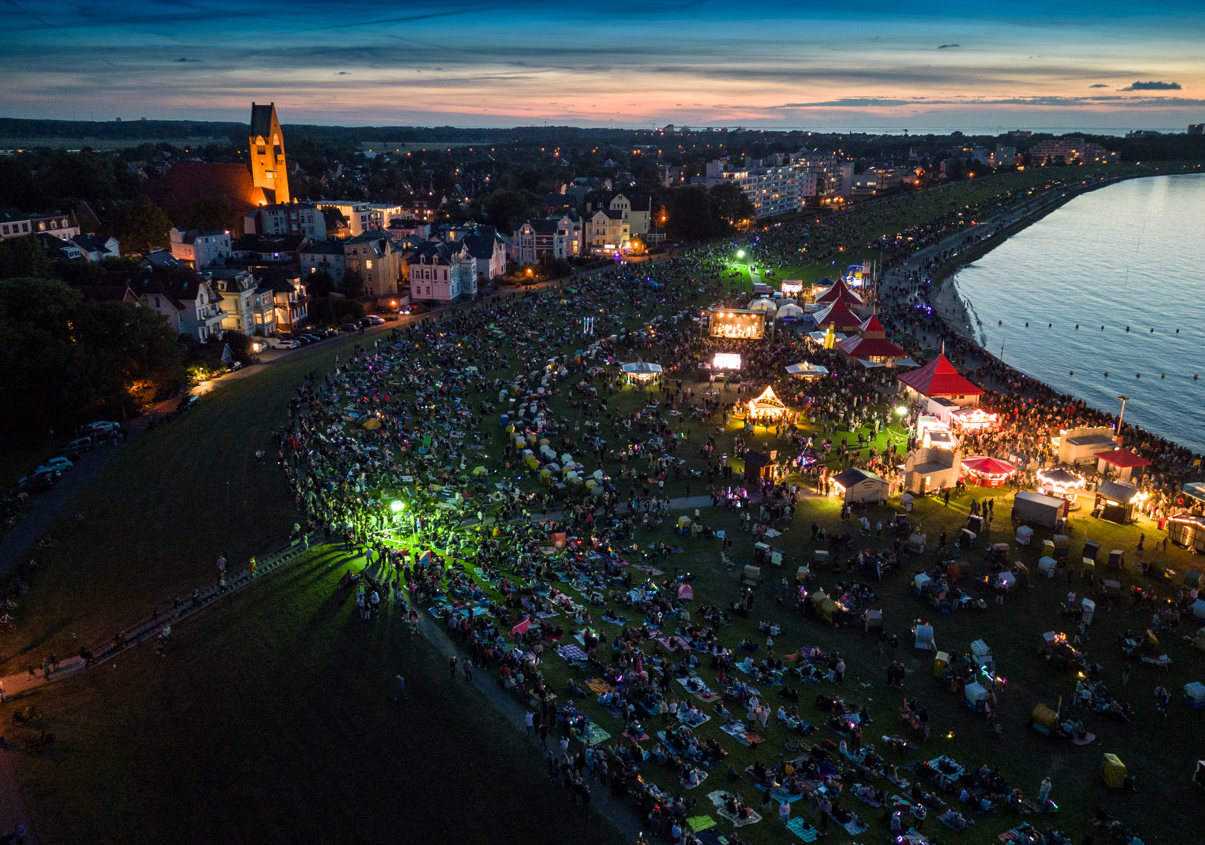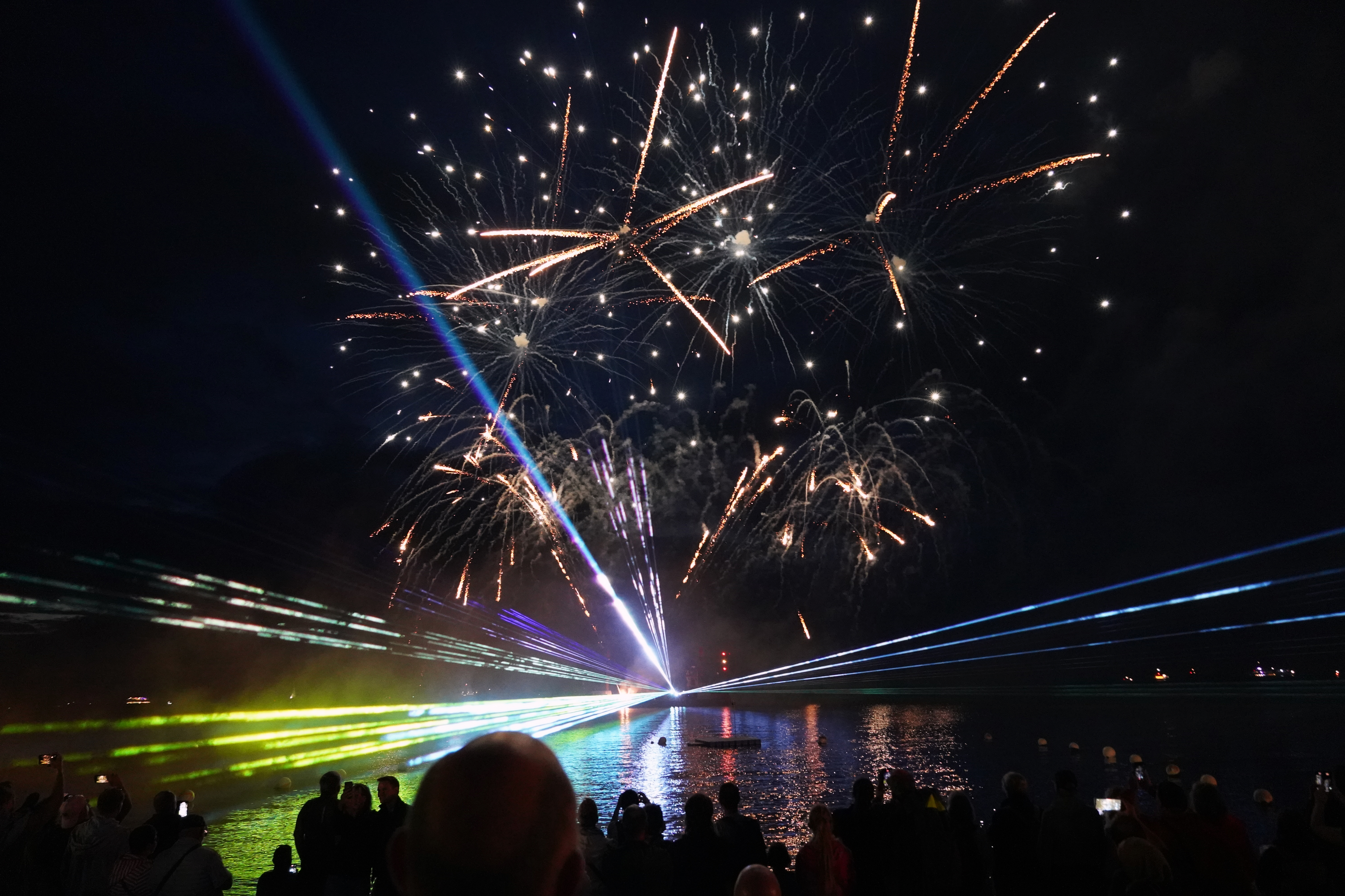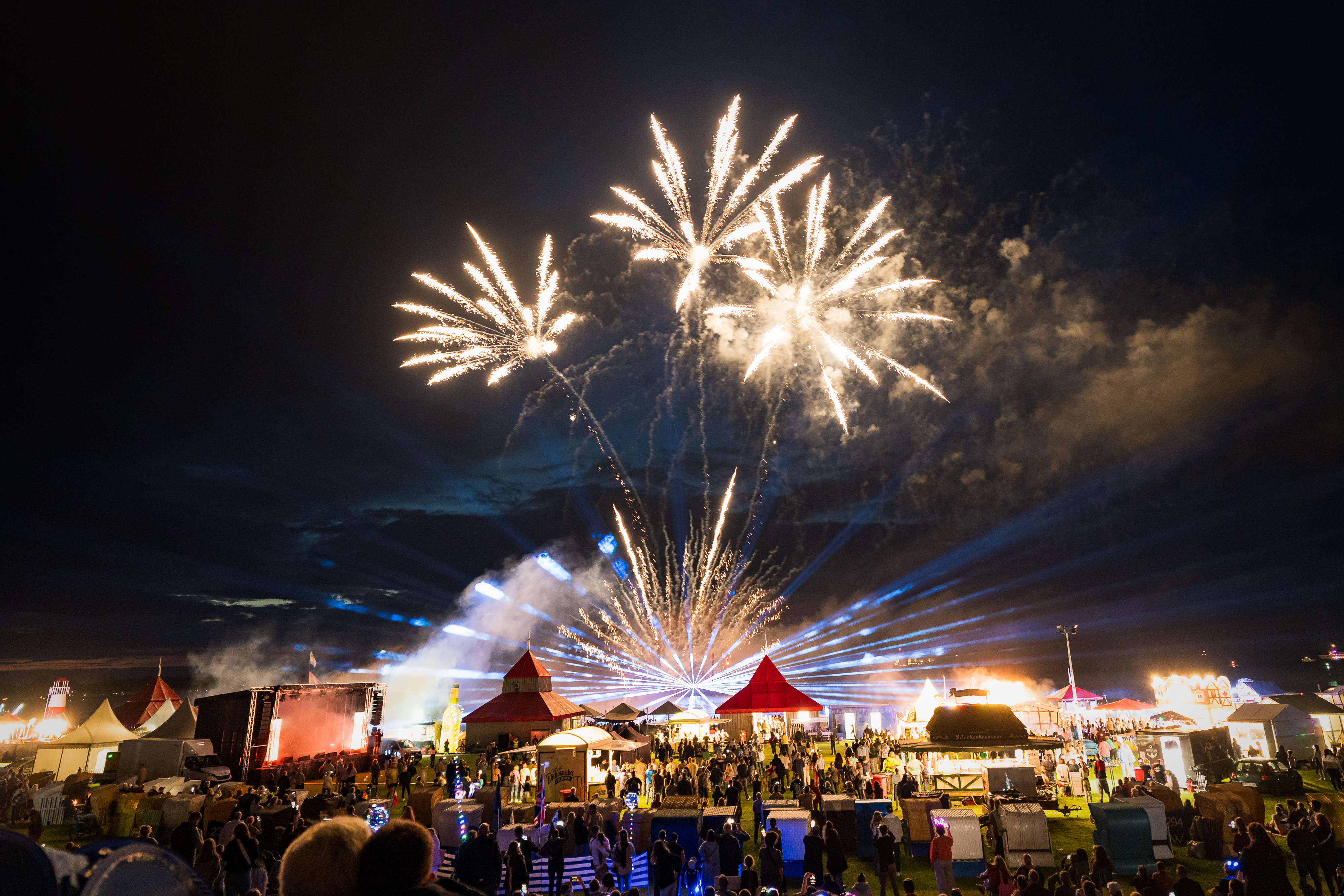 Der krönende Abschluss des Abends ist die Pyro- und Lasershow, die den Nachthimmel über der Grimmershörnbucht in spektakulären Farben erstrahlen lässt.