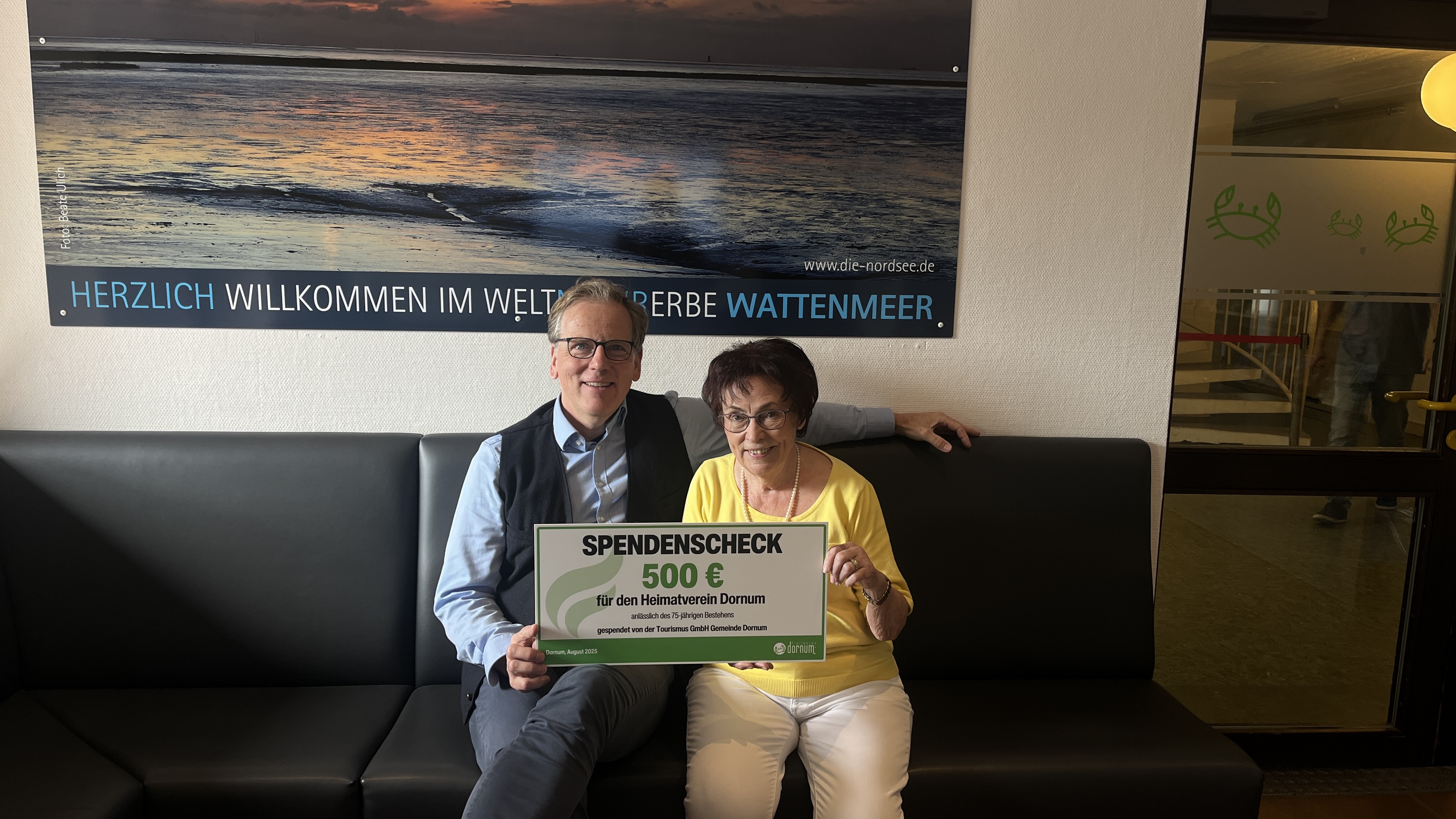 (lifepr) (Dornum, 01.09.2025) Anlässlich seines 75-jährigen Bestehens erhält der Heimatverein Dornum eine Spende in Höhe von 500 Euro von der Tourismus GmbH Gemeinde Dornum. Damit würdigt die Tourismus GmbH das langjährige ehrenamtliche Engagement des Vereins.