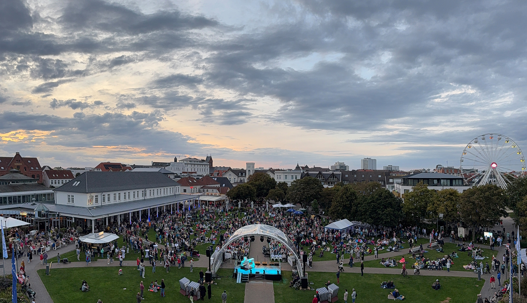 Der Festakt auf dem Kurplatz erinnerte an die „Norderneyer Classic Nights“. Viele Gäste brachten Picknickdecken und Körbe mit, um den Abend unter freiem Himmel zu genießen. Musikalischer Höhepunkt war die Hommage „Luciano — 3 Tenöre feiern eine Legende“. Johannes Groß, Oscar Marin und Ricardo Marinello, begleitet von der Pianistin Claudia Hirschfeld, begeisterten mit weltberühmten Arien wie „Nessun dorma“ und „O sole mio“.
