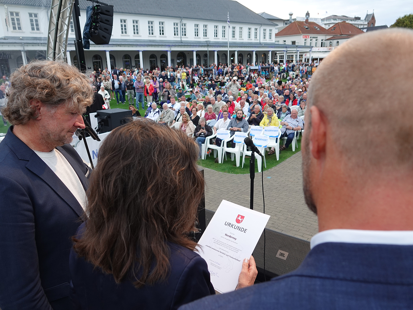 (lifepr) (Wilhelmshaven, 05.09.2025) Ein historischer Abend auf dem Norderneyer Kurplatz vor historischer Kulisse des mehr als 200 Jahre Conversationshaus: Rund 2.000 Besucher:innen erlebten am die feierliche Prädikatisierung Norderneys zum ersten Nordsee- und Thalassoheilbad Deutschlands. Gleichzeitig feierte die Insel das Jubiläum „75 Jahre Nordseeheilbad Norderney“ — ein doppelter Meilenstein für eine Destination, die seit über zwei Jahrhunderten Gesundheits- und Urlaubsgeschichte schreibt.