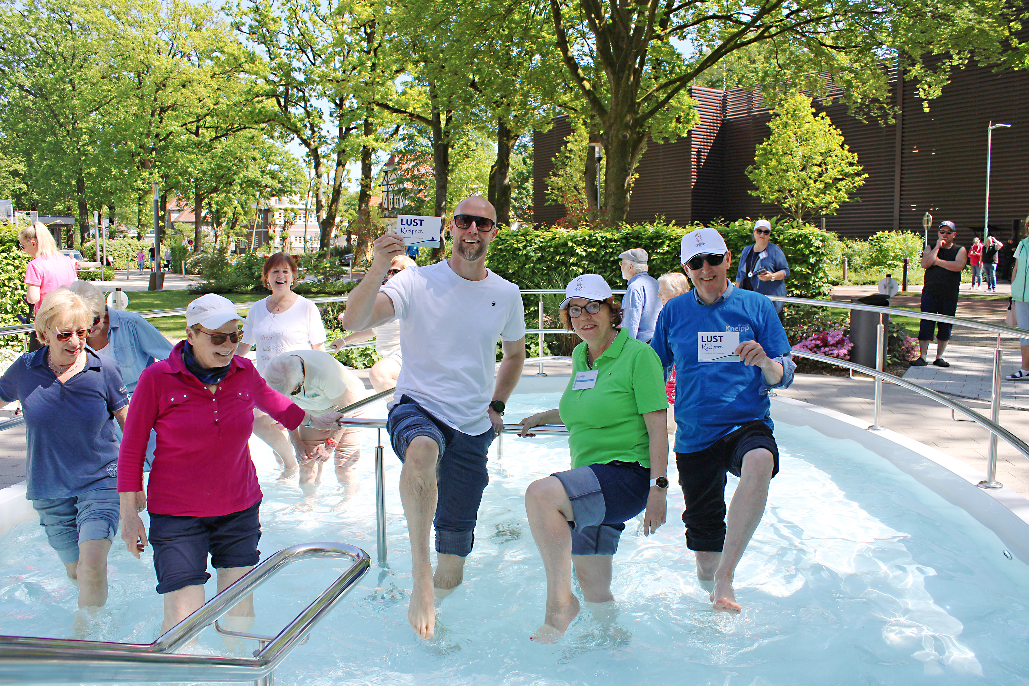 (lifepr) (Wilhelmshaven, 16.05.2024) Bei bestem Wetter und sehr angenehmen Temperaturen trafen sich Kurdirektor Dr. Norbert Hemken sowie einige Mitglieder des KneippVereins Bad Zwischenahn am Kneipp-Becken beim Reha-Zentrum. Und wie es sich für eine offizielle Eröffnung gehört, zögerten die Beteiligten nicht lange, zogen sich Schuhe und Socken aus und gingen mutig in das doch recht kalte Wasser. Bei diesen Temperaturen allerdings eine willkommene Abkühlung. Mit dieser symbolischen Geste ist das Kneipp-Becken für die aktuelle Saison eröffnet.