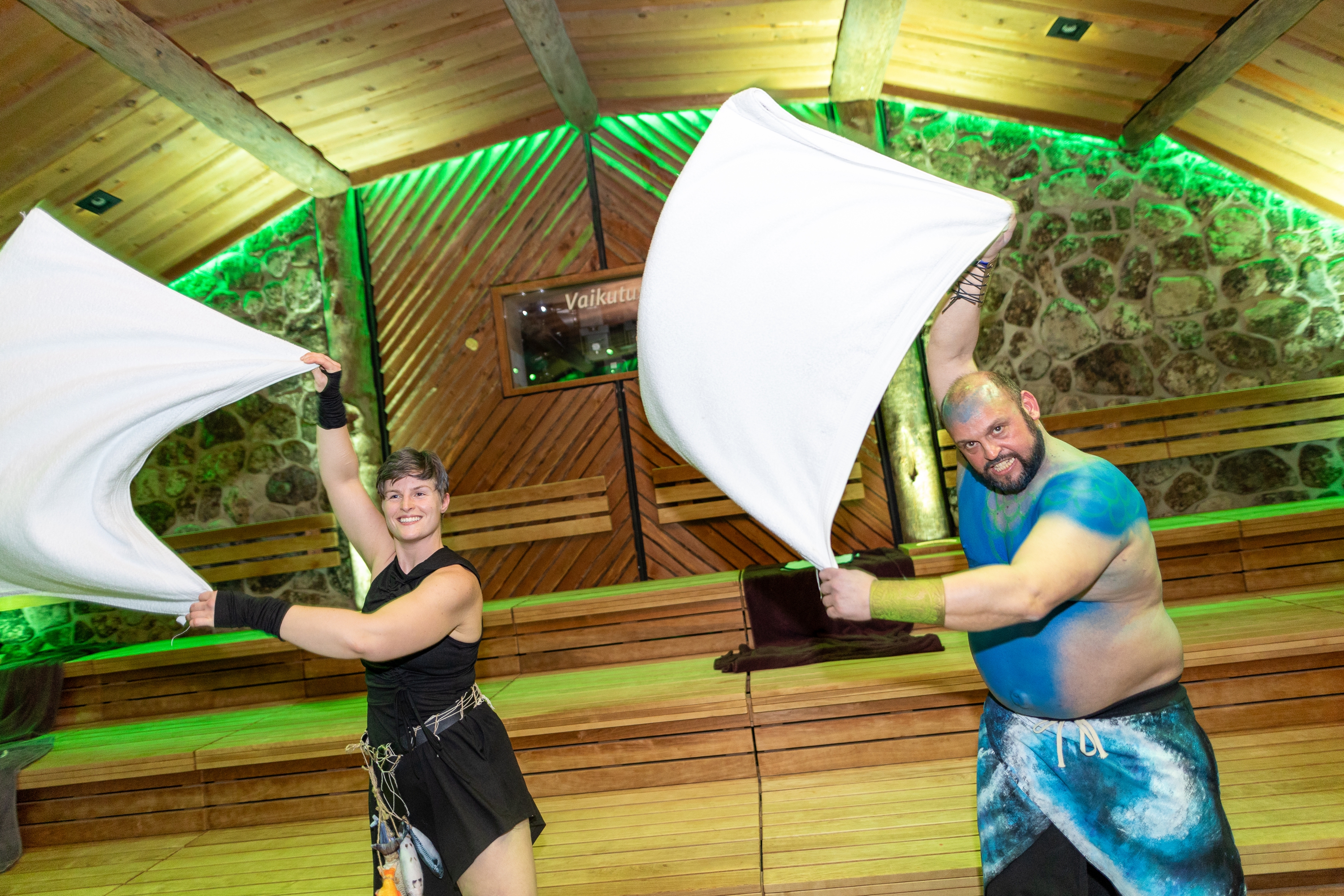 Nach intensiven Trainingsmonaten und zwei Probetrainings im H2O in Herford, war es am Tag der Entscheidung soweit. Das BadeWerk-Team bestand aus den beiden Aufgussexperten Lena Poplawski und Marc Kraus. Unterstützend kümmerte sich Kay Renz um die organisatorischen Dinge sowie Duftkompositionen und Michaela Schulz um Maske und Kostüme. In Zusammenarbeit begeisterten sie das Publikum mit einem Show-Aufguss der Extraklasse.