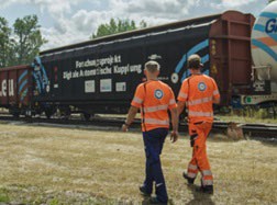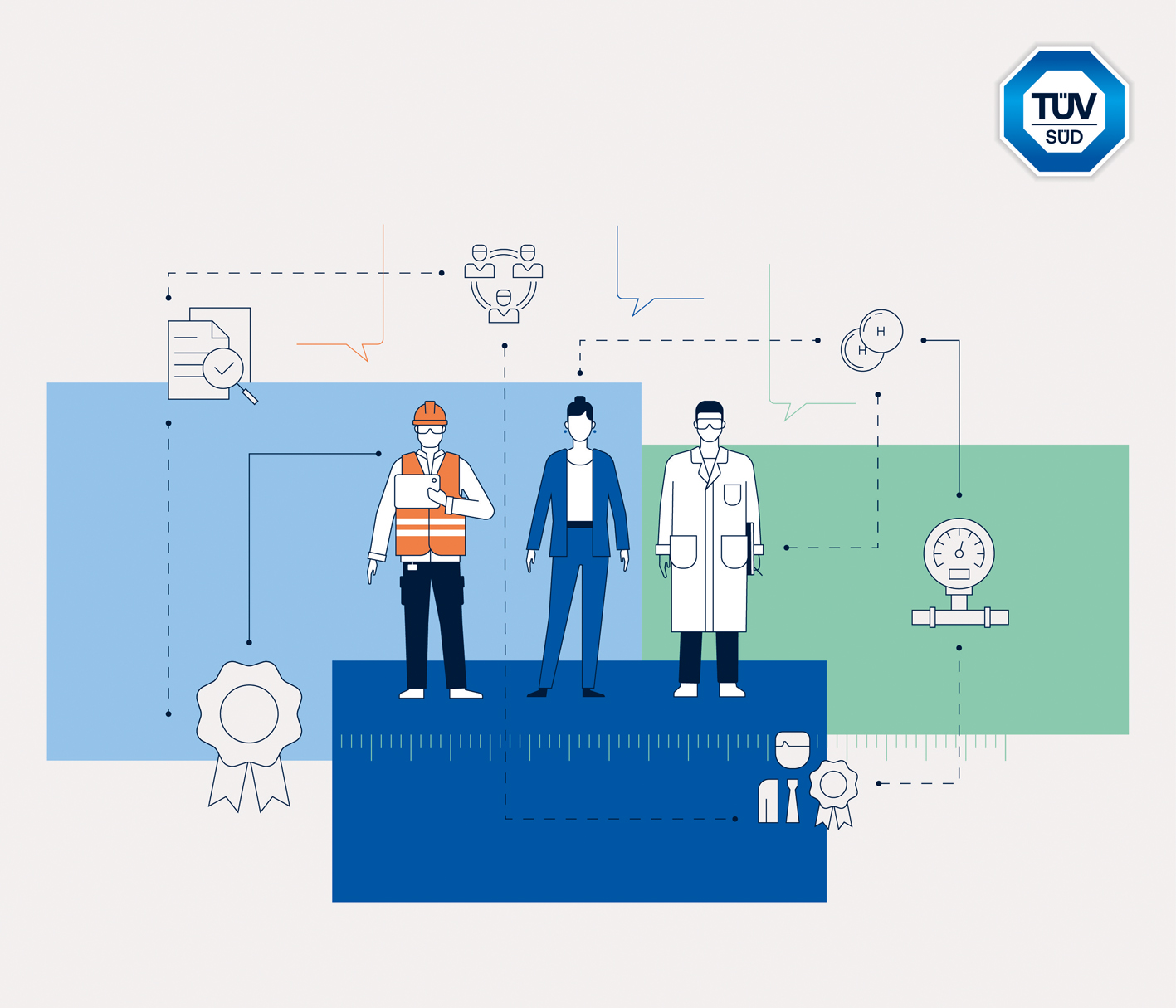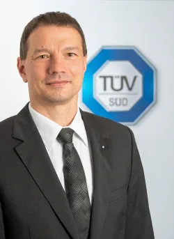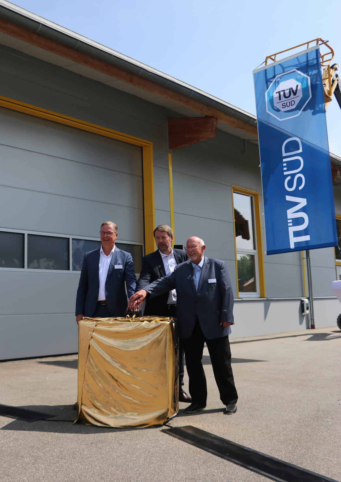 Übergabe der Urkunde auf der InnoTrans in Berlin (v.l.n.r.): Dr. Tobias Ständer, Leiter der bestimmten Stelle, TÜV SÜD Rail GmbH, Alfred Beer, Business Line Manager Rolling Stock, TÜV SÜD Rail GmbH, Dr. Andreas Thomasch, Vizepräsident Eisenbahnbundesamt, und Klaus-Michael Bosch, Geschäftsführer, TÜV SÜD Rail GmbH