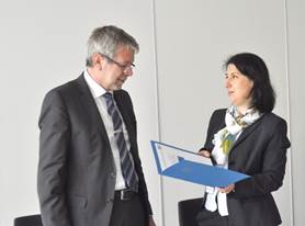 Vorstandsvorsitzender Gerhard Glatz (links) und die Bayerische Wirtschaftsstaatssekretärin Katja Hessel (Foto: uniVersa)
