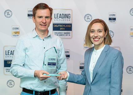 Abteilungsleiter Sebastian Wolff mit der Auszeichnung "Leading Employer 2025".