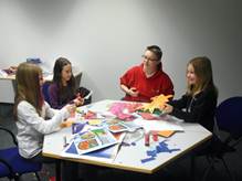 Kinderbetreuung am Buß- und Bettag bei der uniVersa. Nach einem gemeinsamen Mittagessen in der Betriebskantine stand ein buntes Spiel- und Bastelangebot sowie T-Shirts färben auf dem Programm / Foto: uniVersa