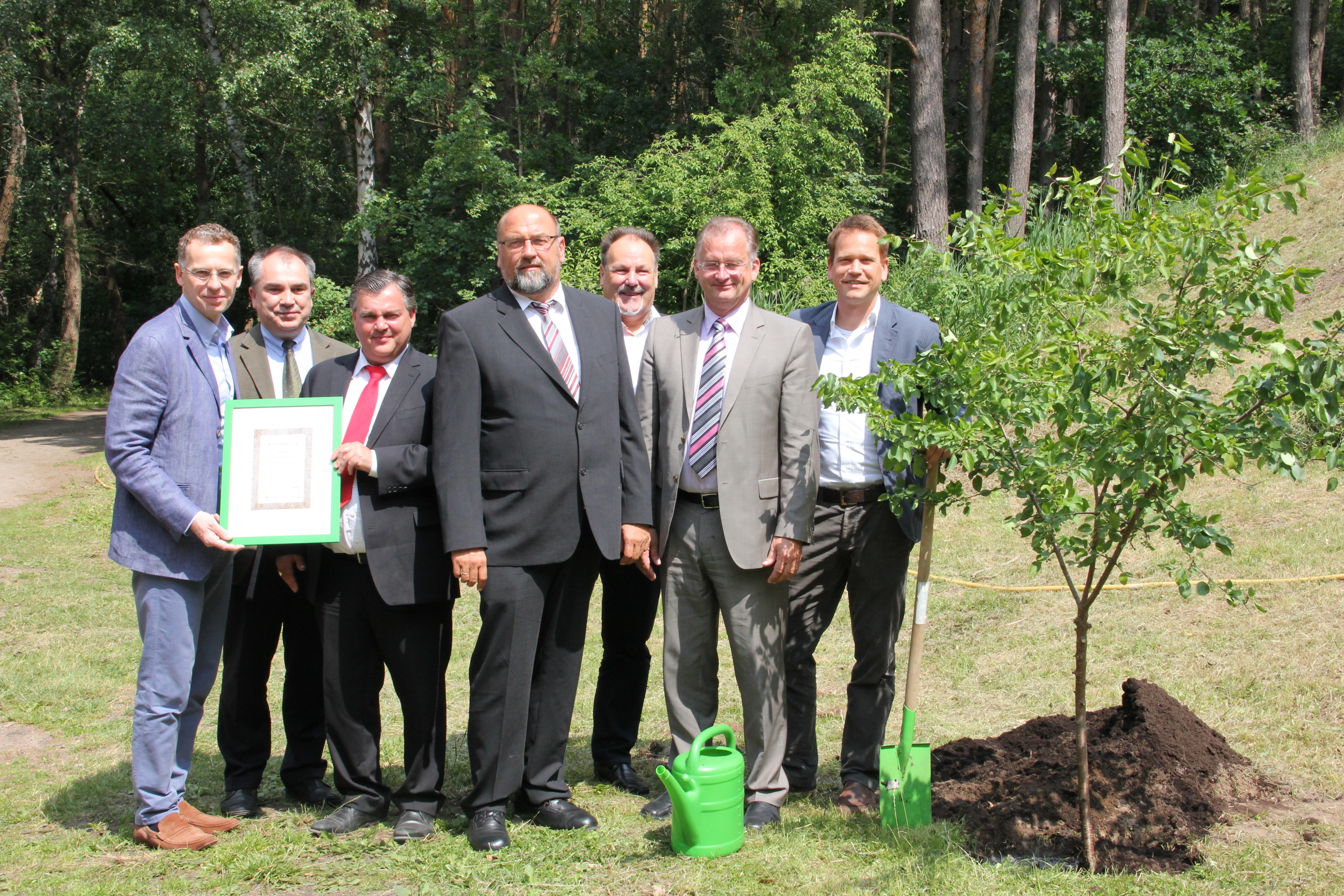 Pflanzten einen Baum und weihten damit das Viverde Mecklenburgische Seen symbolisch ein (von links): Gerald Schmidt (Leiter Produktmanagement Deutschland bei TUI Deutschland), Manfred Baum (Referatsleiter im Ministerium für Landwirtschaft, Umwelt und Verbraucherschutz Mecklenburg-Vorpommern), Harry Glawe (Minister für Wirtschaft, Bau und Tourismus Mecklenburg Vorpommern), Bernd Fischer (Geschäftsführer Tourismusverband Mecklenburg-Vorpommern), Heiko Kärger (Landrat Mecklenburgische Seenplatte), Andreas Pospiech (Leiter Category Management Konzepthotels bei TUI Deutschland) / Quelle: TUI / Van der Valk
