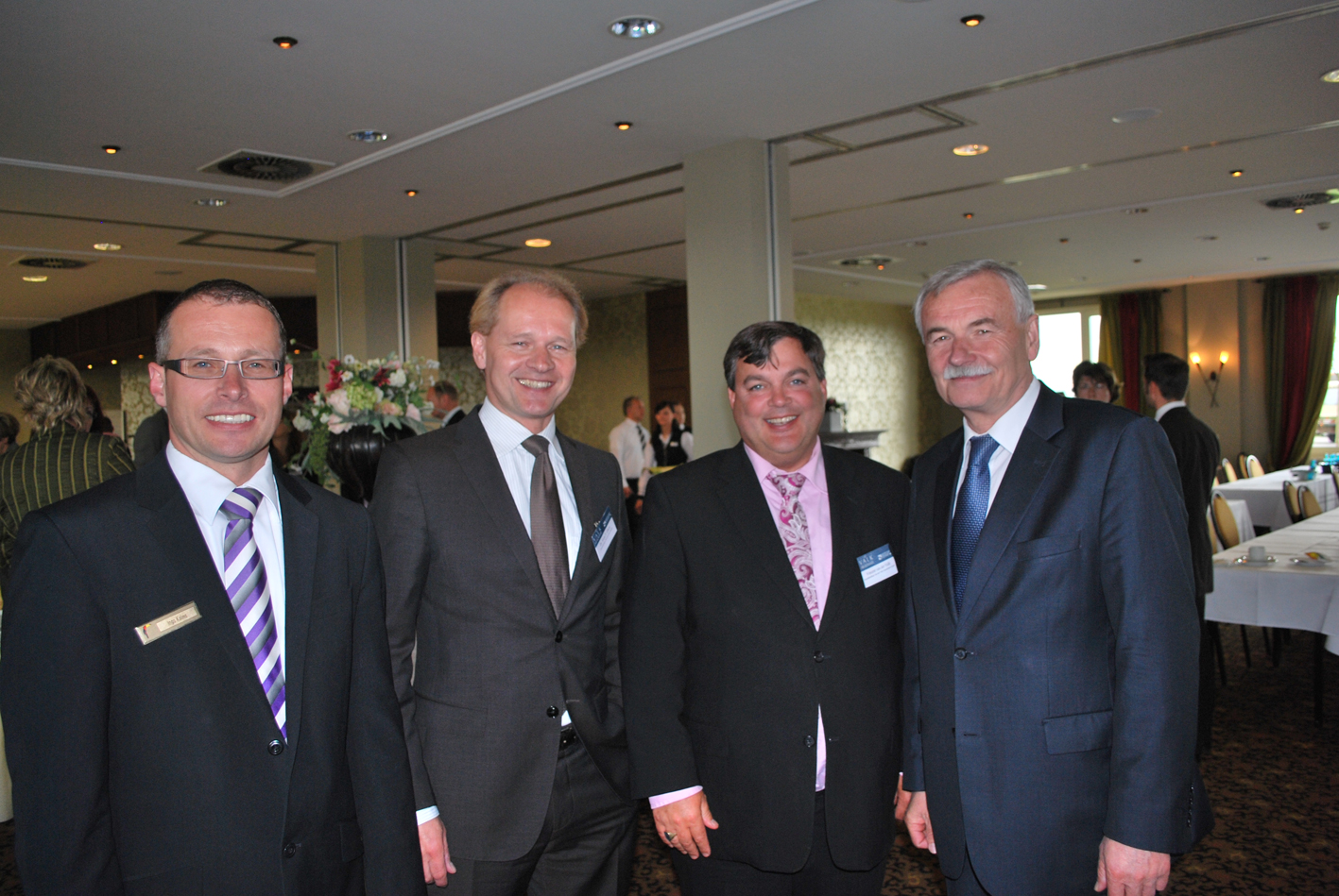 Gaben Startschuss für die neue Van der Valk Akademie: Ingo Kalms (Hoteldirektor), Sven T. Olsen (Geschäftsführer SeminarCenterGruppe), Vincent van der Valk (Geschäftsführer Deutschland GmbH) sowie Wirtschaftsnminister Jürgen Seidel