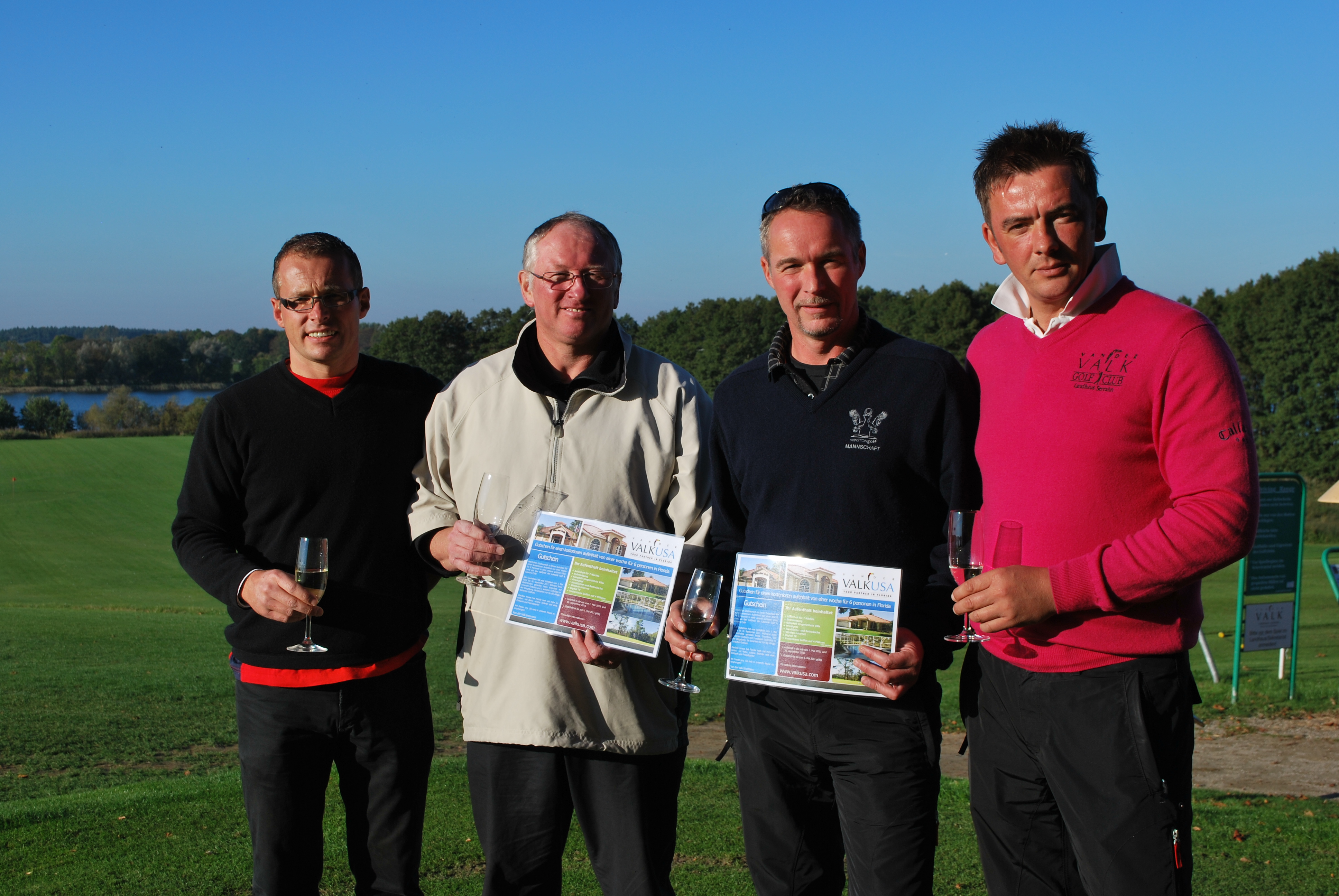 Clubpräsident Ingo Kalms, Dr. Günter Globisch (Güstrow), Roman Köhn (Schwerin) und Golfpro Mike Schulze. (v.l.n.r).