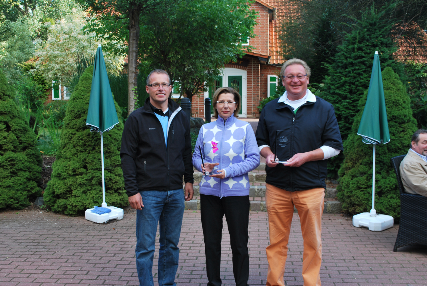 Clubpräsident Ingo Kalms und die neuen Clubmeister Heike Fischer und Jürgen Siebert (v.l.n.r)