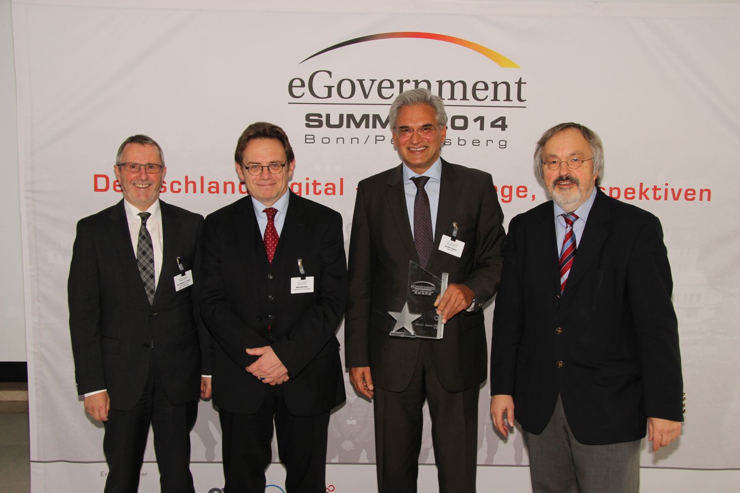 (lifepr) (Würzburg, 14.11.2014) Am 13. und 14. November 2014 trafen sich hochkarätige IT-Entscheider auf Bundes- und Landesebene zum 7. eGovernment Summit in Bonn. Unter dem Kongressmotto "Deutschland Digital - Ziele, Wege, Perspektiven" hatte die Vogel IT-Akademie wieder einen exklusiven Zirkel von eGovernment- und Ver-waltungsexperten aus Bund und Ländern zum Informationsaustausch geladen. Neben umfangreichen Vorträgen und Diskussionen wurden der eGovernment Leadership Award, der eGovernment Kommunikations Award und - als Sonderpreis - der Best Practice Award der Kommunen verliehen.