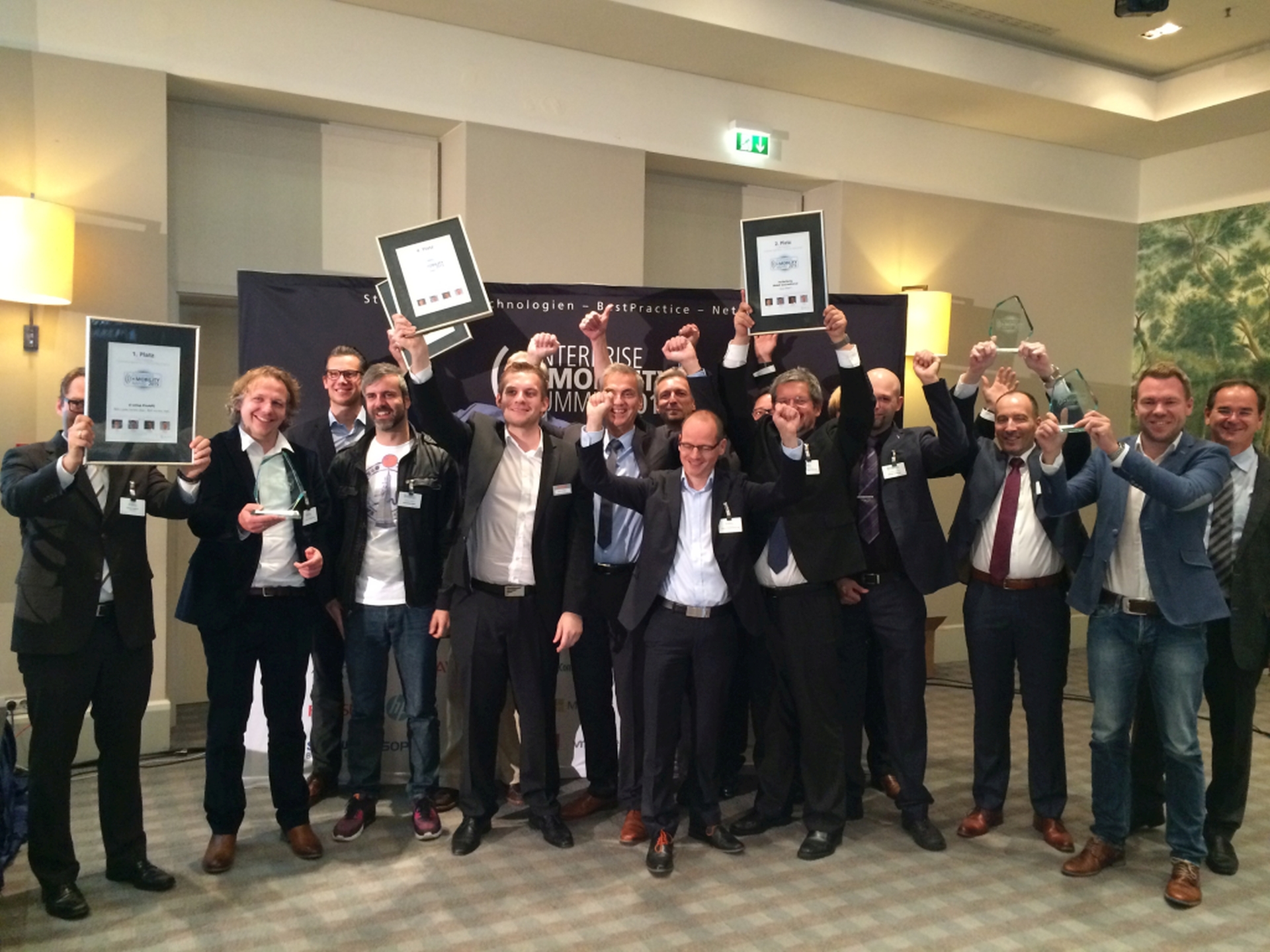 Insgesamt 26 Bewerbungen erreichten die Jury um Franz Haslbeck (Director, m-ACADEMY), Werner Nieberle (Geschäftsführer, Vogel IT-Medien), Dr. Carlo Velten (Managing Director, Crisp Research) und Andreas Vollmer (Geschäftsführer, appealing), die die besten Lösungen in den Kategorien „Business Process Mobilization“, „Customer Experience / Customer Recruitment“ und „Workforce Mobility“ auszeichneten. Am Ende stimmten die Teilnehmer des Summits live vor Ort ab und kürten den Gewinner des Publikums Awards.